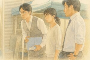 沈黙のパレードの大きなテーマの一つが、復讐と正義の関係です。佐織の家族や恋人、商店街の人々は、法の枠組みの中では蓮沼が裁かれない現実に直面します。彼らは警察や裁判所の判断に納得できず、自分たちの感情と社会のルールの間で揺れ動きます。