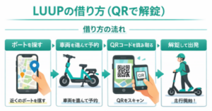 • LUUPは基本的にアプリ→QR→走行→返却の4ステップ